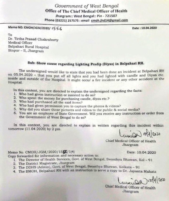 تويتر Governor West Bengal Jagdeep Dhankhar على تويتر Notice By Chief Medical Officer Jhargram On 10 4 To Medical Officer Belpahari Rural Hospital Binpur Ii For Responding To Nation Call Pmoindia For